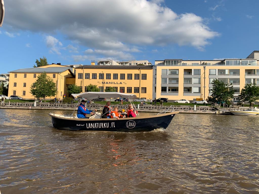 Veneilyä päästiin testaamaan Turussa kamarimme järjestämässä VenePicnic-tapahtumassa Lånan vuokraveneillä. Veneily tapahtui Aurajoessa, joka laskee mereen, mutta ihan merelle saakka ei tällä kertaa ehditty mennä. Ensikertalaisille oli muutenkin sopivampaa pysytellä rannan tuntumassa. Lajikokeiluun ei tarvinnut itsellä olla mukana kuin säähän sopivat vaatteet, kaiken muun sai vuokraamolta. Oikeastaan muita varusteita ei tarvittukaan kuin pelastusliivit. Pelastusliivejä löytyy monen kokoisia ja kokeilemalla Jattakin löysi itselleen sopivat.
